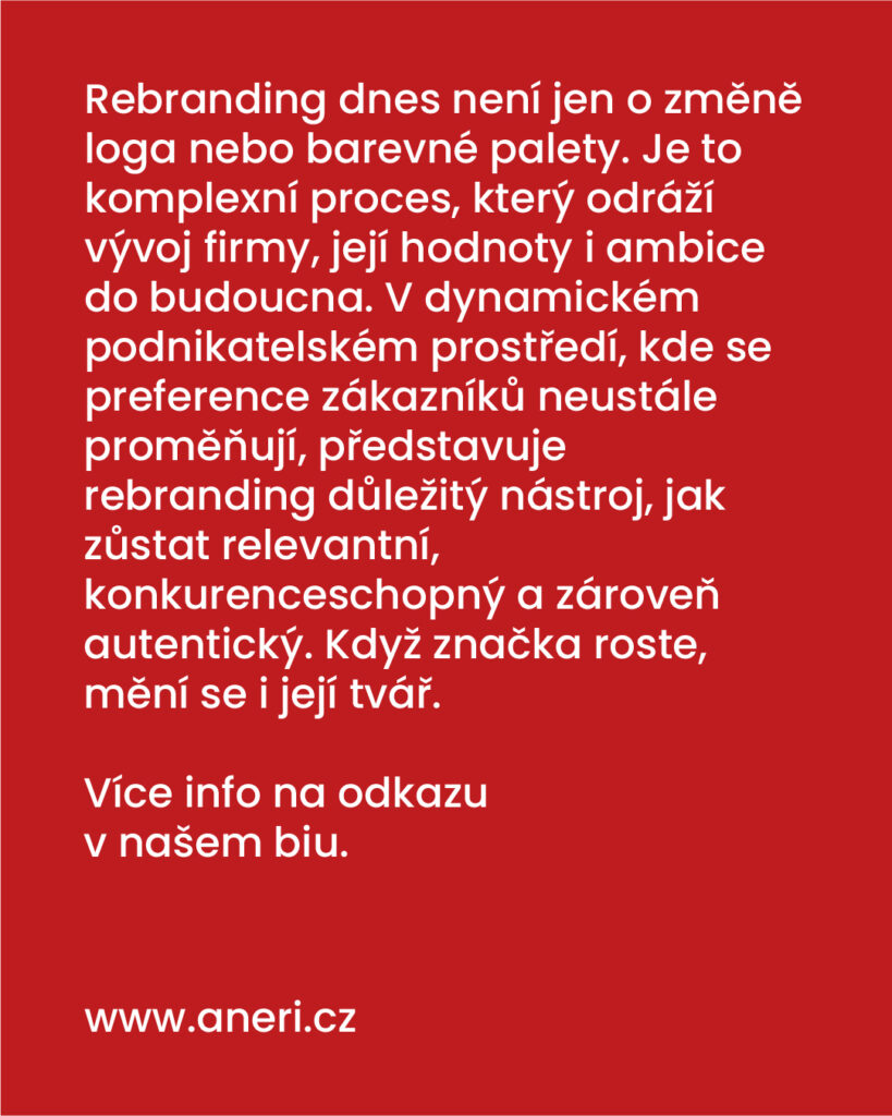 Rebranding dnes není jen o změně loga nebo barevné palety. Je to komplexní proces, který odráží vývoj firmy, její hodnoty i ambice do budoucna. V dynamickém podnikatelském prostředí, kde se preference zákazníků neustále proměňují, představuje rebranding důležitý nástroj, jak zůstat relevantní, konkurenceschopný a zároveň autentický. Když značka roste, mění se i její tvář.